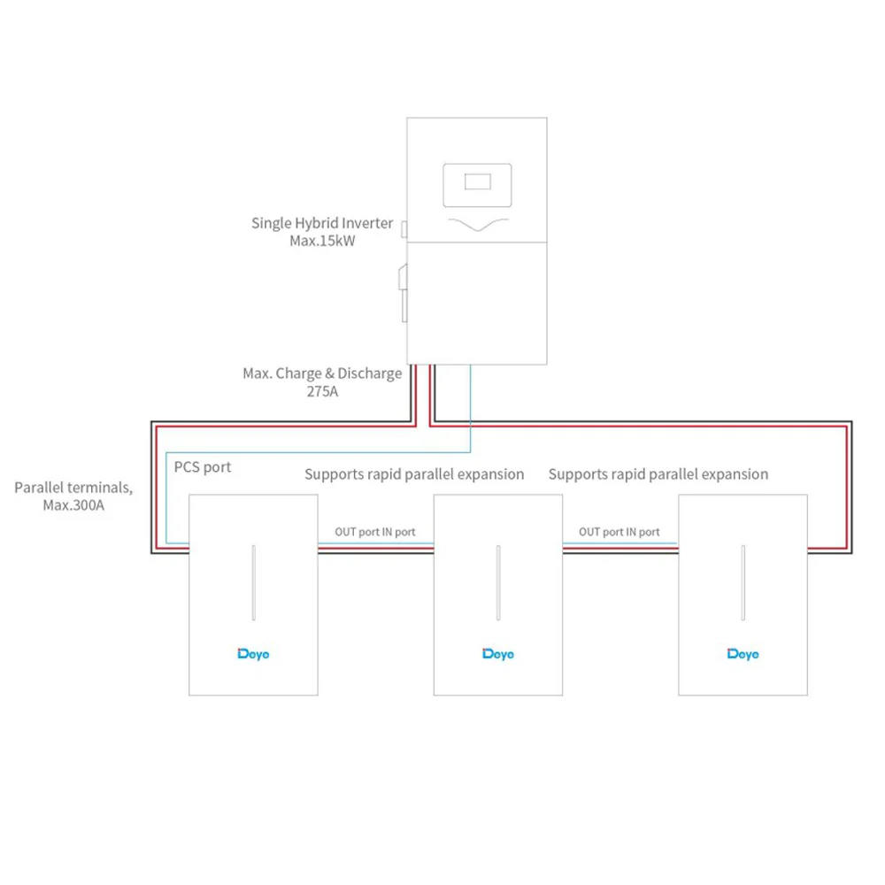 The battery modules feature auto-networking, eliminating the need for DIP switch coding. Easy maintenance, remote monitoring, and upgrades are supported through the Deye platform. The battery also seamlessly integrates with Deye inverters to form an all-in-one stacked system.