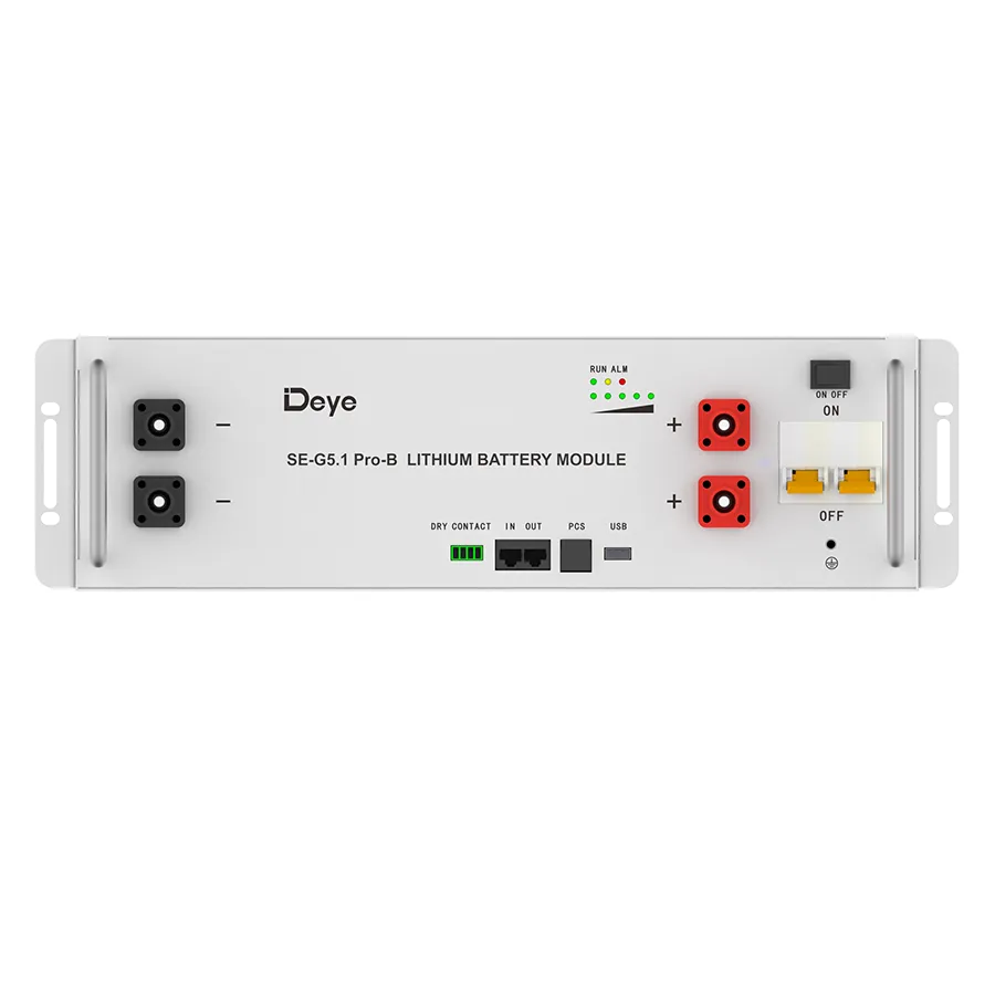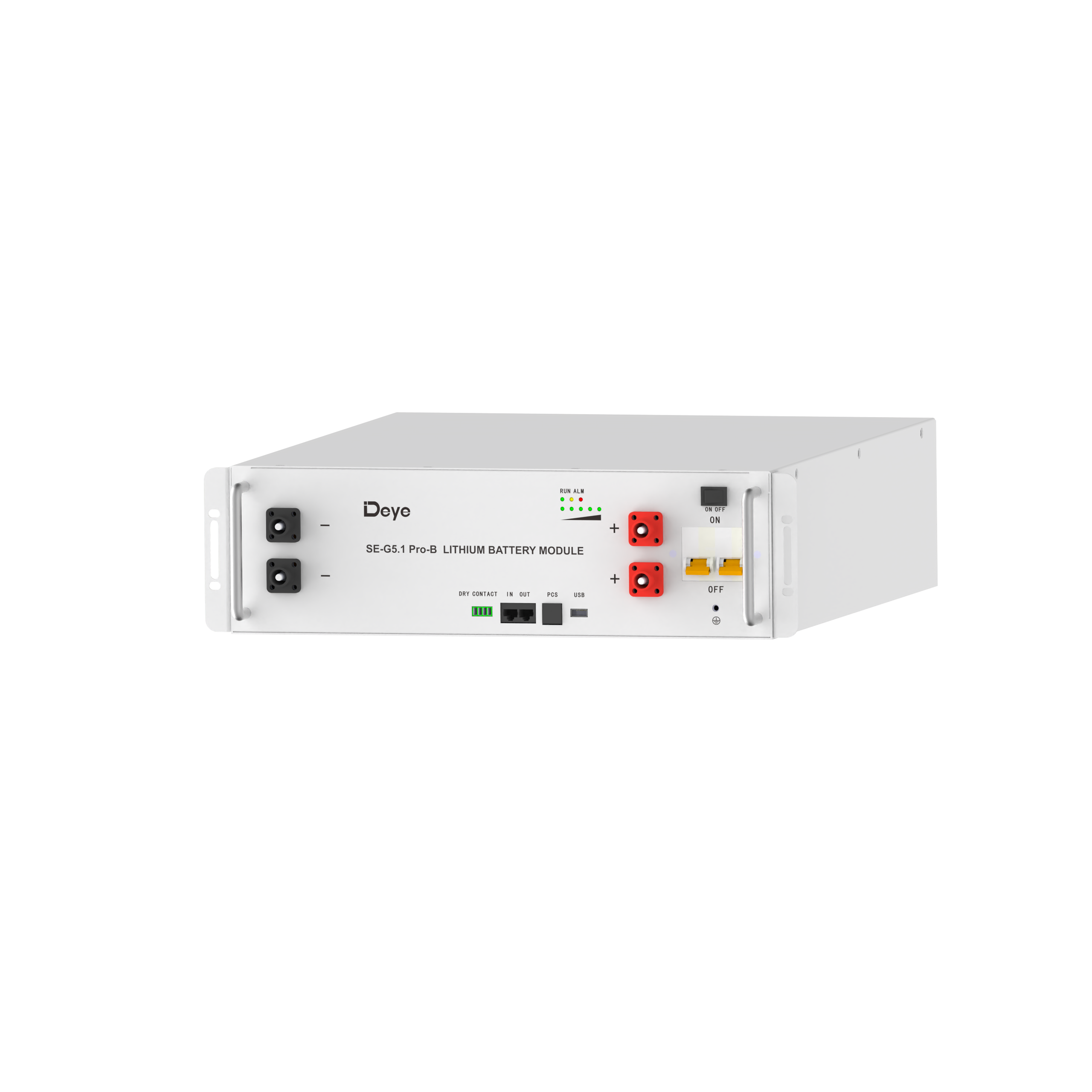 The Deye SE-G5.1 Pro-B is a cutting-edge lithium iron phosphate (LFP) battery designed for safe, reliable, and flexible energy storage solutions. This modular battery system is perfect for both residential and commercial applications, allowing you to increase your self- consumption ratio and optimize your energy usage.