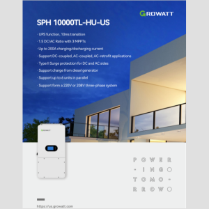 The included Growatt high-voltage battery power module with base enables fast charging, high round-trip efficiency, and long cycle life—making it ideal for daily energy shifting and backup during grid outages. Excess solar energy can be stored during the day and automatically dispatched during peak utility hours or power interruptions, helping homeowners reduce reliance on the grid while maintaining comfort and continuity.