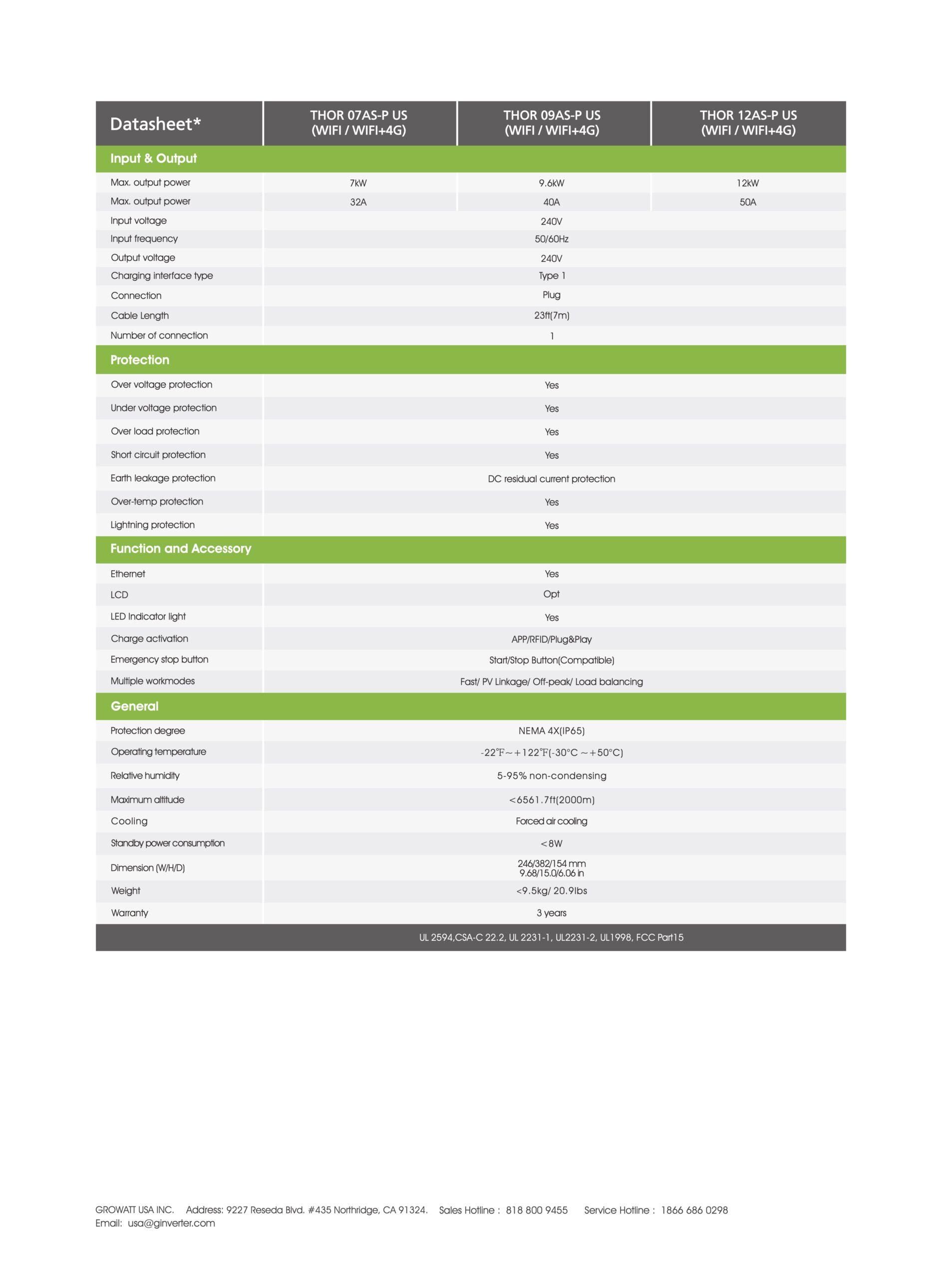 THOR EV Charger  Certificates: UL