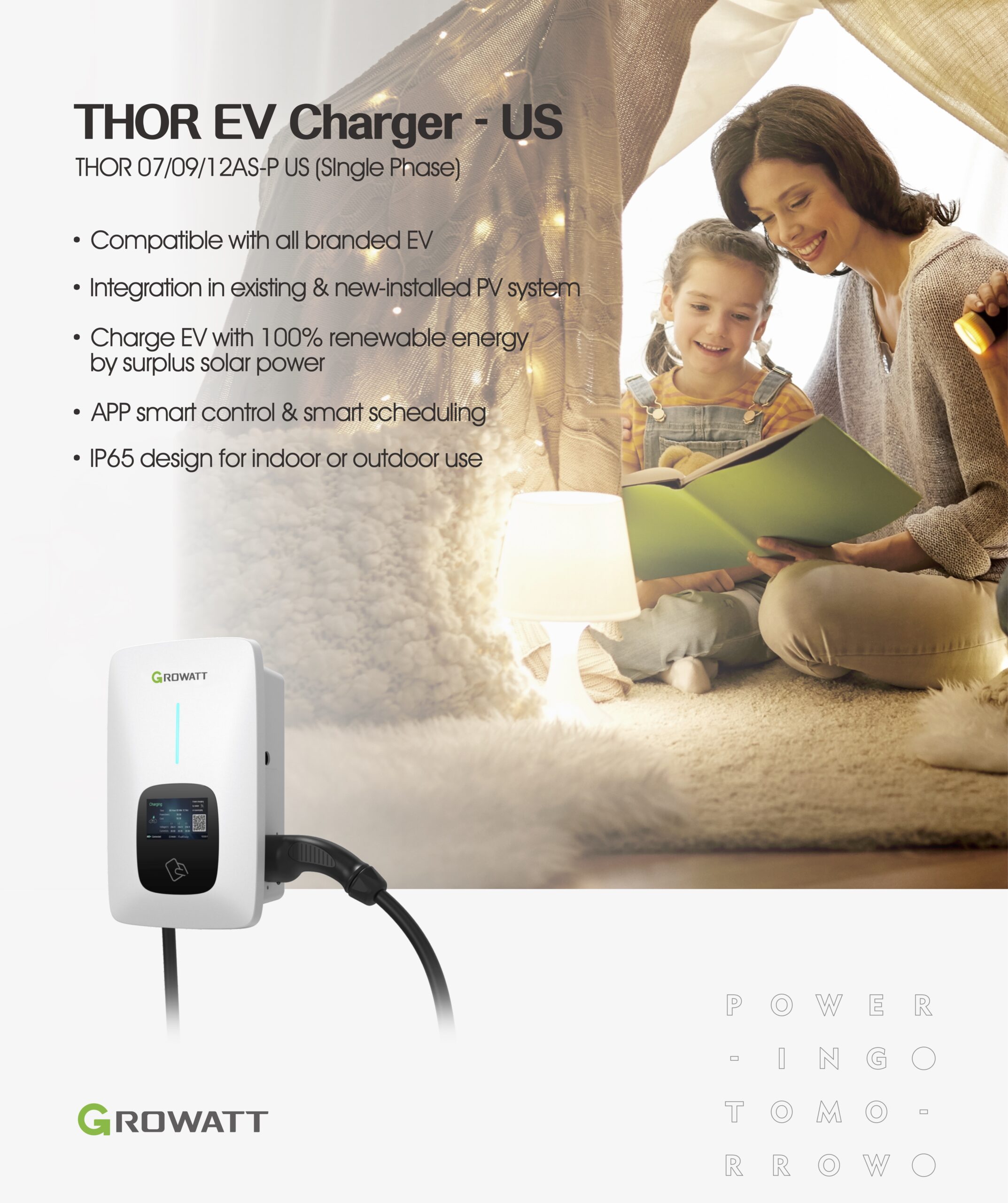 GROWATT 9kW 40Amp EV Charger| THOR 09AS-P US