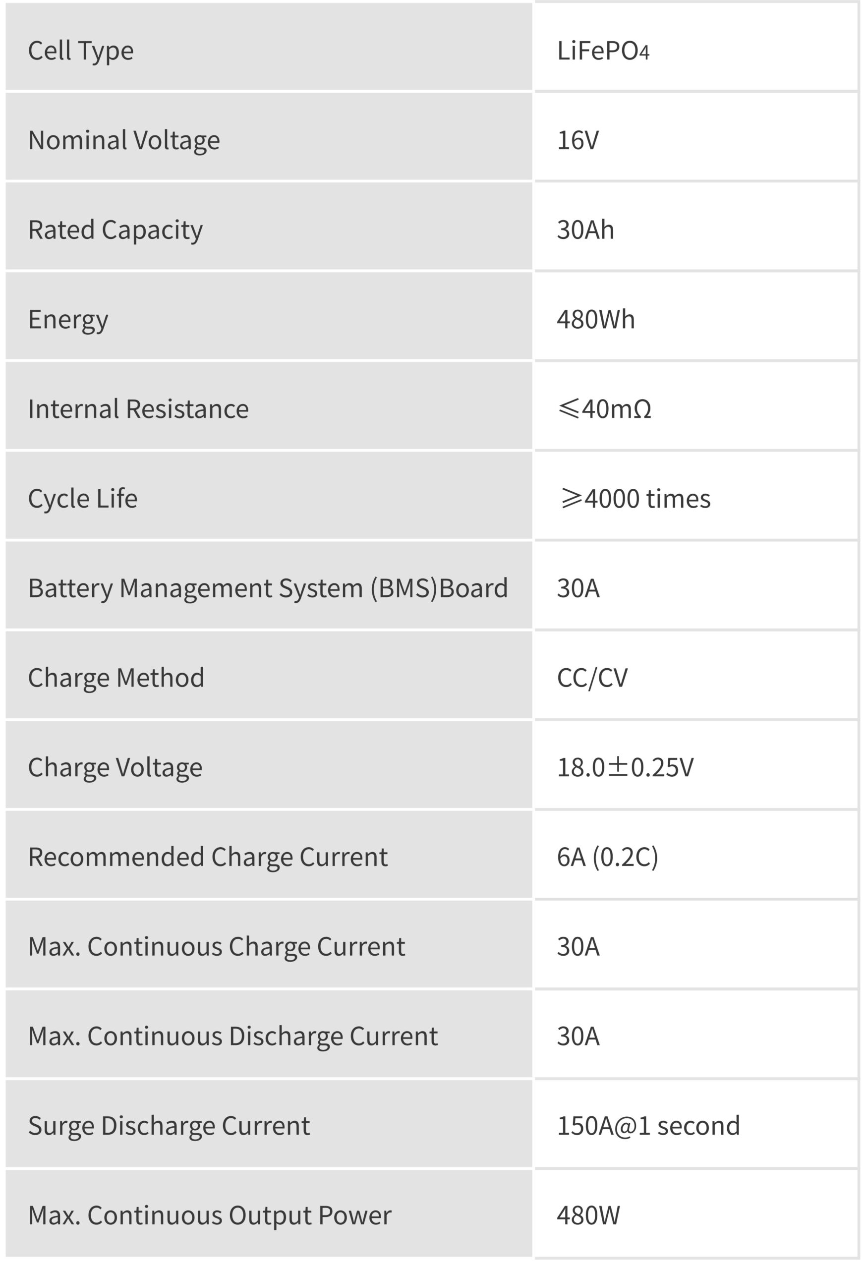 • EV grade LiFePO4 cells, 4000+ cycles@100% DOD, 10 years lifespan and 62.9Wh/lb energy density.