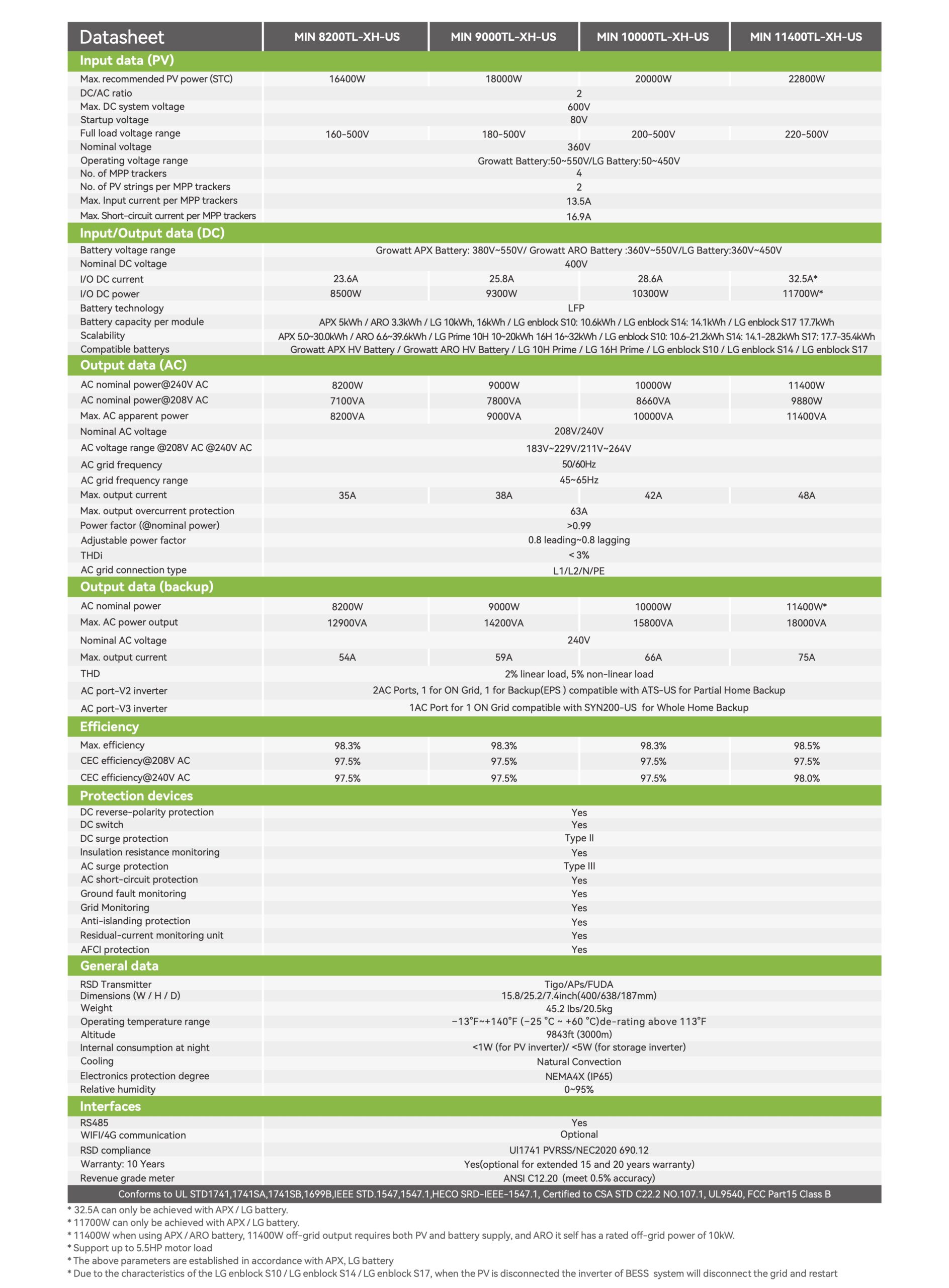 GROWATT 11.4kW Grid-Tie Storage Inverter | MIN 11400TL-XH-US (WL) (TRS-T) (V3)