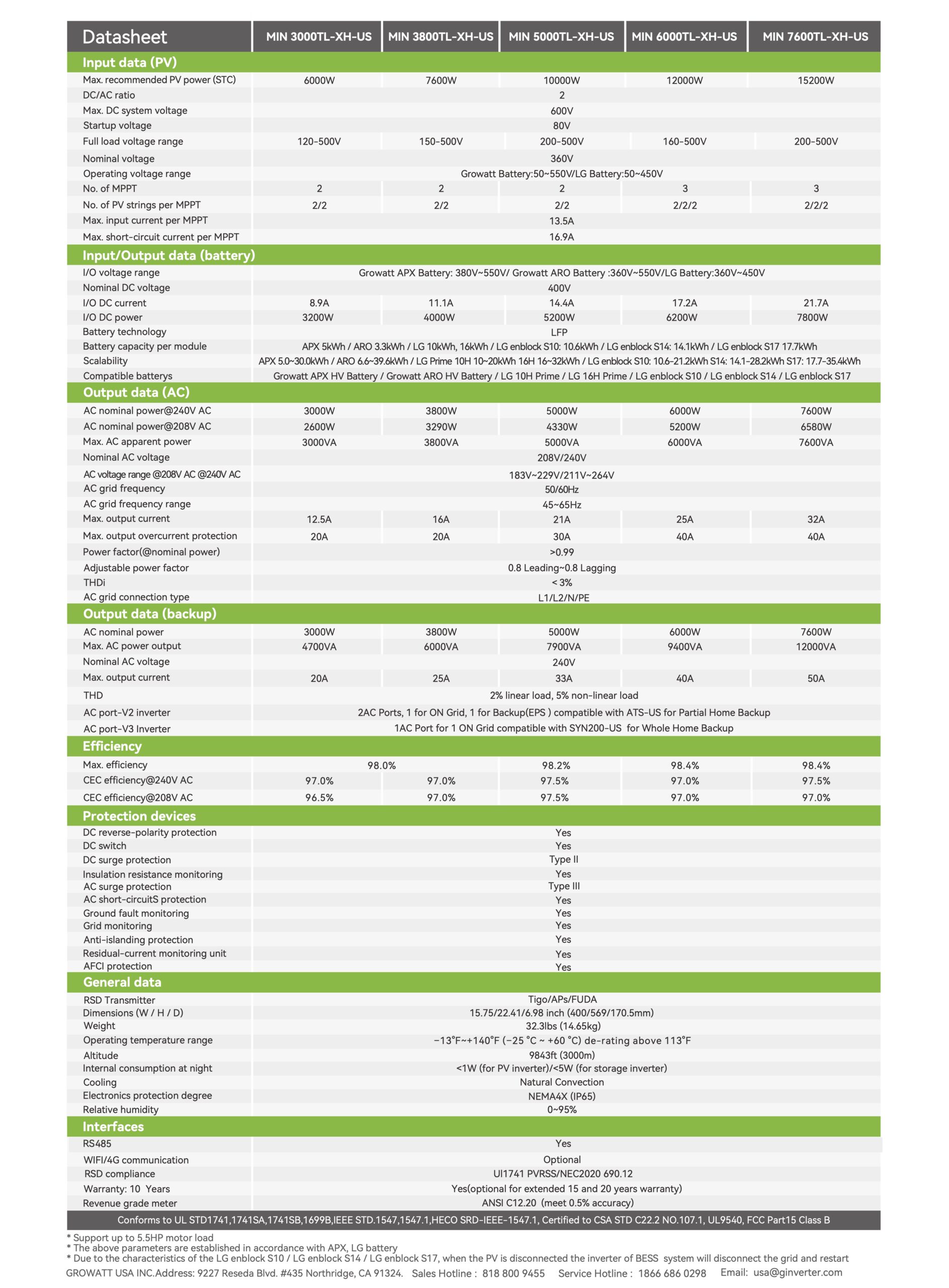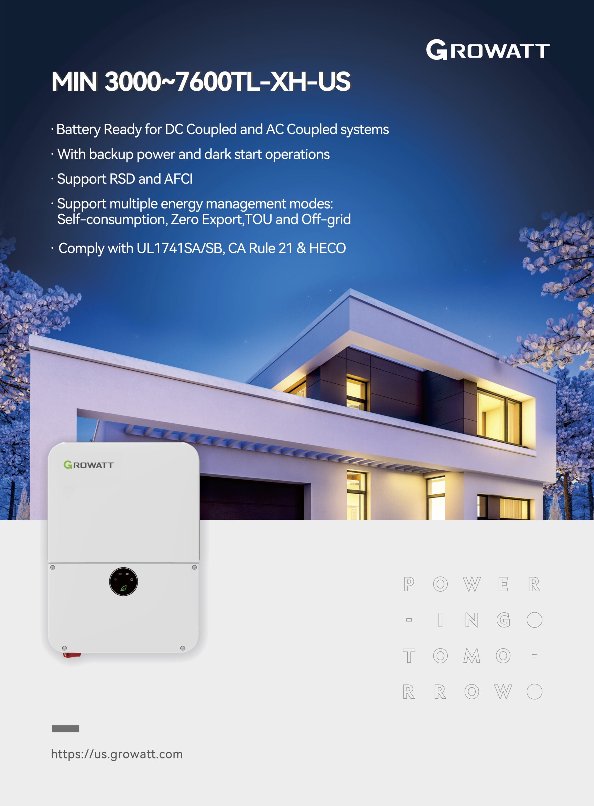 GROWATT 3.8kW Grid-Tie Storage Inverter | MIN 3800TL-XH-US (W) (TRS-T) (RGM) (V2)